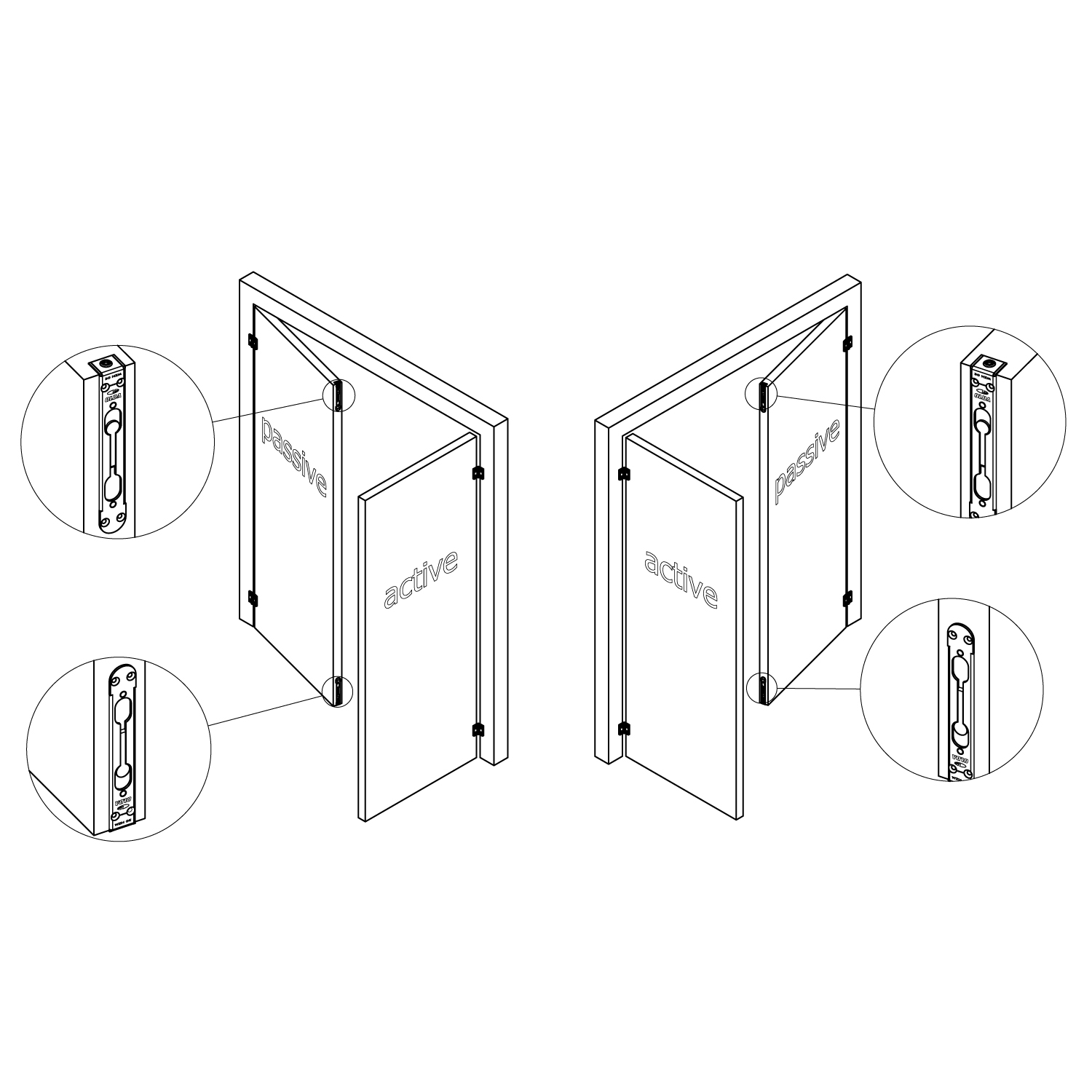 OLDA 36 HZM-DS monteras infällt i dörrbladskanten, antingen med eller utan urtag för stolpen.